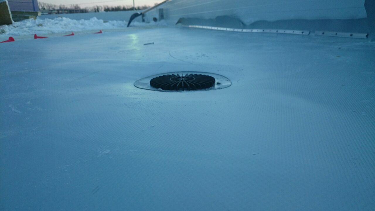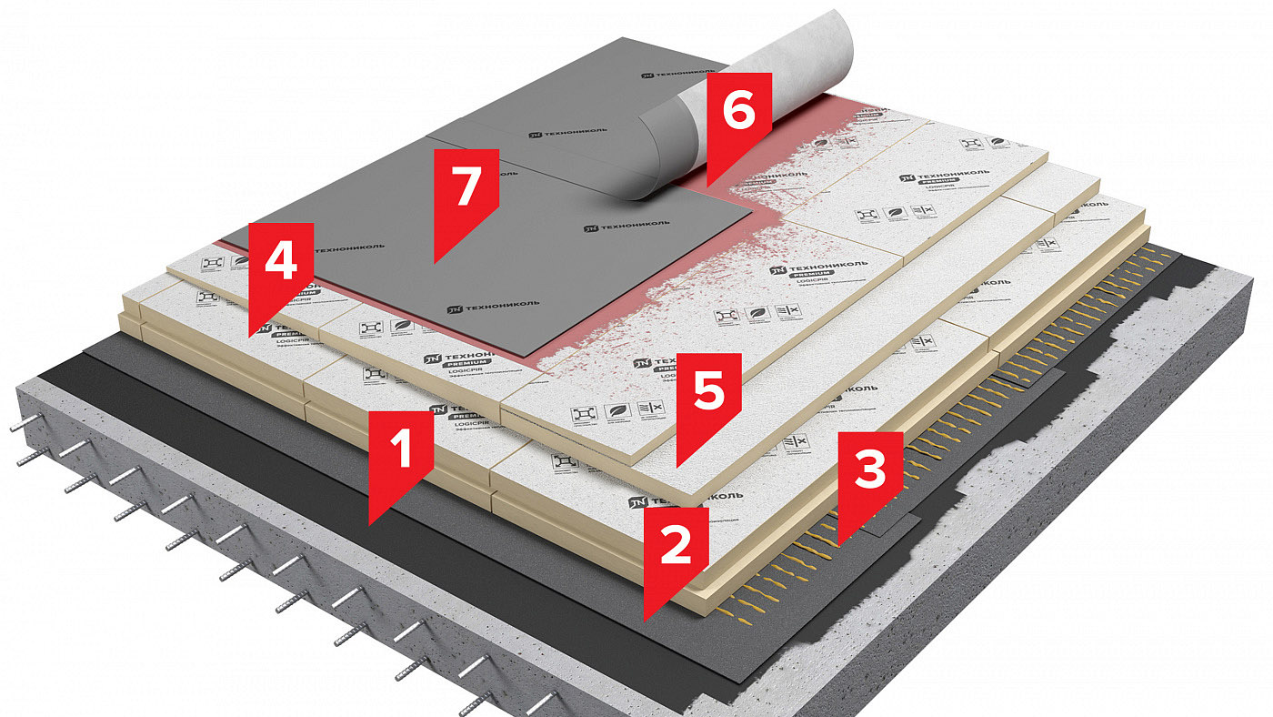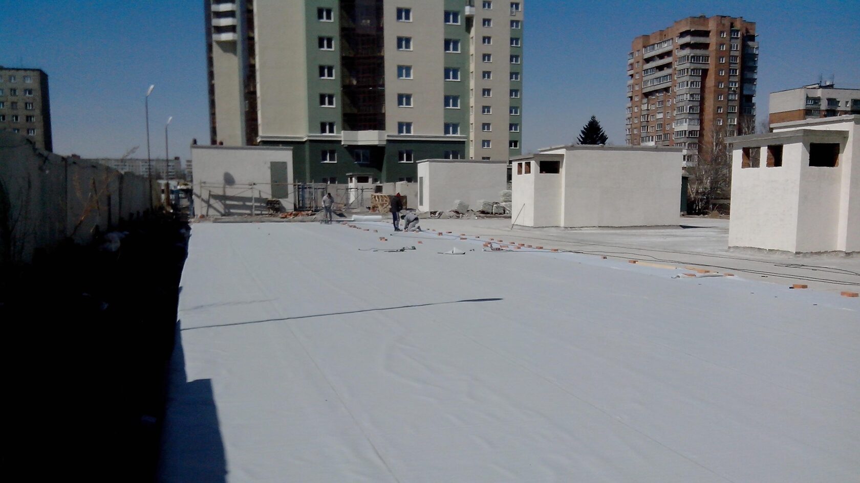 Механическое крепление (основание профлист, монолитная плита, хорошая стяжка) Самый распространенный вариант, поскольку гидроизоляцию можно крепить сразу поверх теплоизоляции без стяжек, что конечно же экономит массу средств для заказчика. Плюс ко всему данные кровли имеют малый вес, что так же не маловажно при выборе материала перекрытия под кровлю.